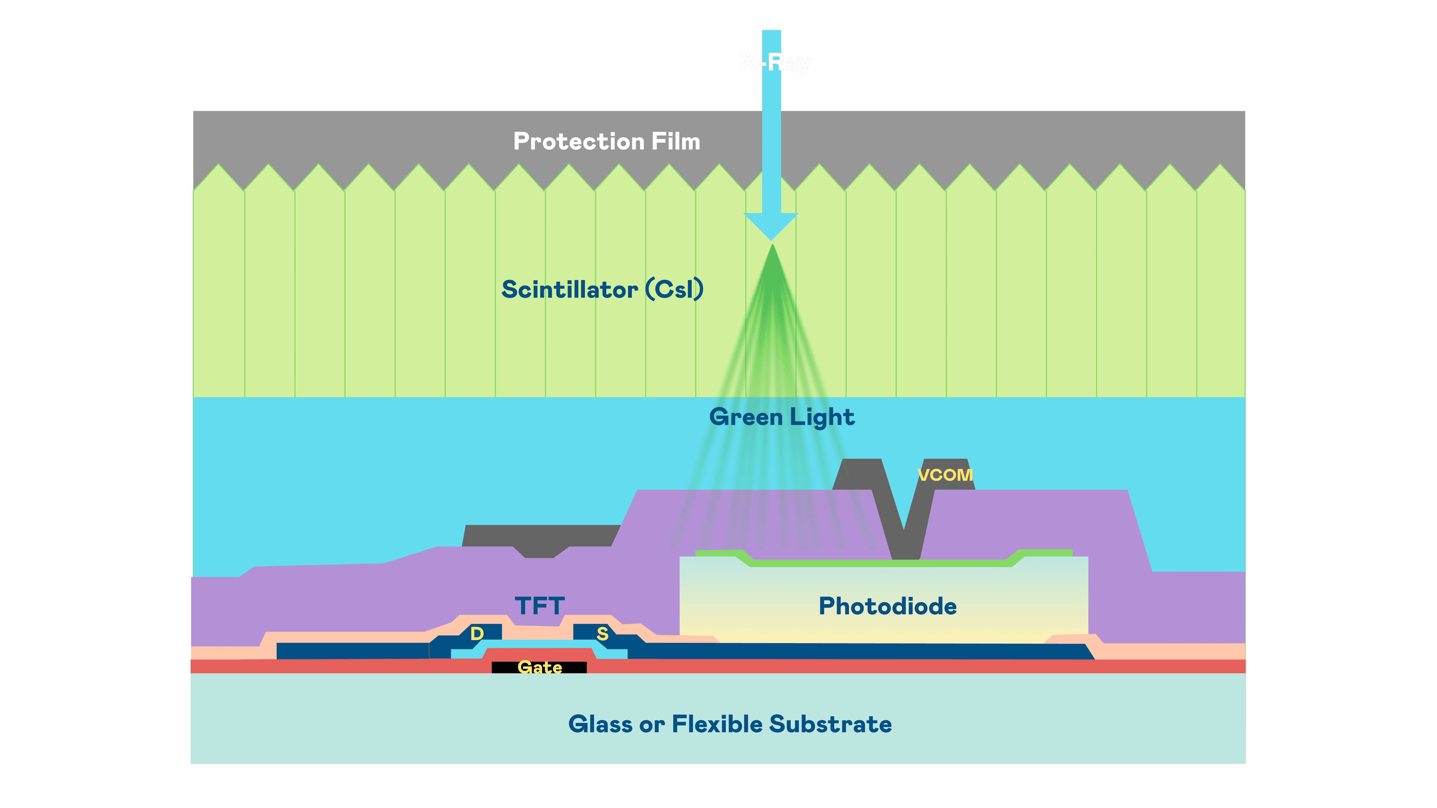 888.BY集团电子游戏的X光影像感测阵列使用薄膜电晶体 (TFT) 作为每个像素的读取开关,,,,搭配光电二极体(Photodiode)的光电转换元件,,用以感测X光影像讯号。。